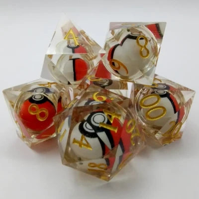 Kits de 7 dés polyédriques en résine - Kit de dés Poké-ball translucide