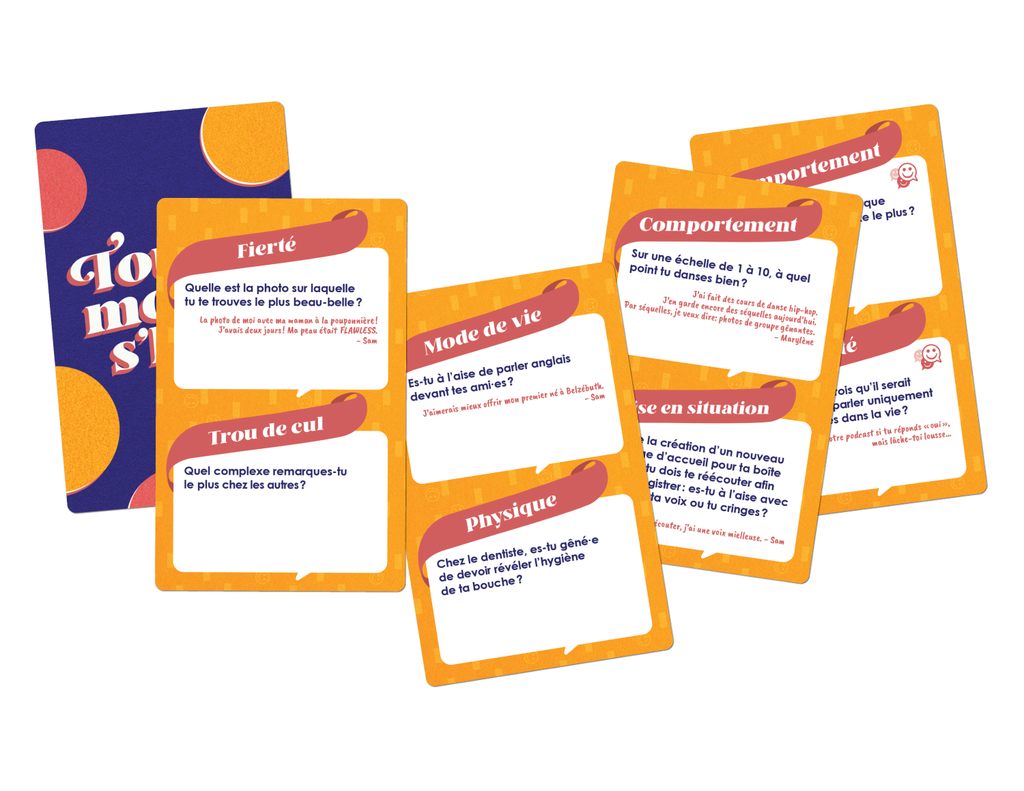Les autres joueurs sont invités à rebondir, poser des sous-questions, ou partager leurs propres complexes pour créer un vrai moment de connexion (et de thérapie collective improvisée).